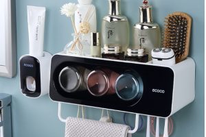 Kệ Nhả Kem Đánh Răng Tự Động ECOCO Kèm Cốc Treo Ngang
