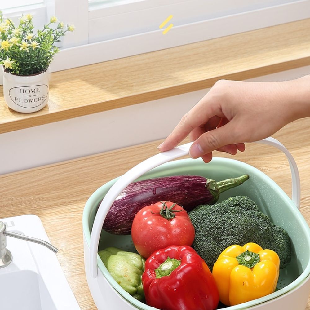Thiết kế tay cầm chắc chắn giúp nhấc rổ dễ dàng, thuận tiện khi rửa rau, trái cây, chén bát hoặc thực phẩm tươi sống.