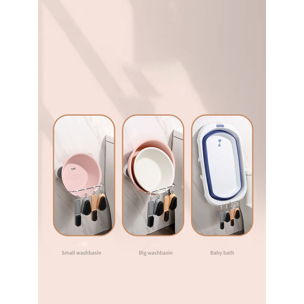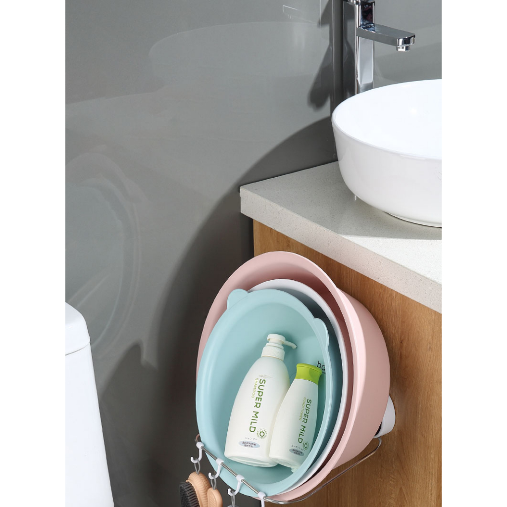 Ngoài để thau chậu, sản phẩm còn có móc treo để khăn tắm, đồ vệ sinh, phụ kiện phòng tắm, giúp không gian luôn ngăn nắp và sạch sẽ.