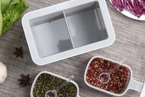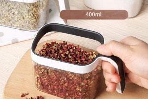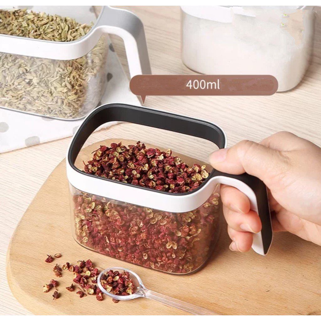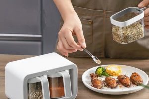 – Thiết kế hộp gia vị có kích thước vừa tay, đựng được những loại gia vị cần thiết trong nấu nướng như: muối, đường, hạt nêm, bọt ngọt, dầu, tiêu, bột ớt,…