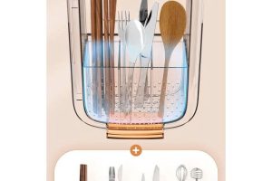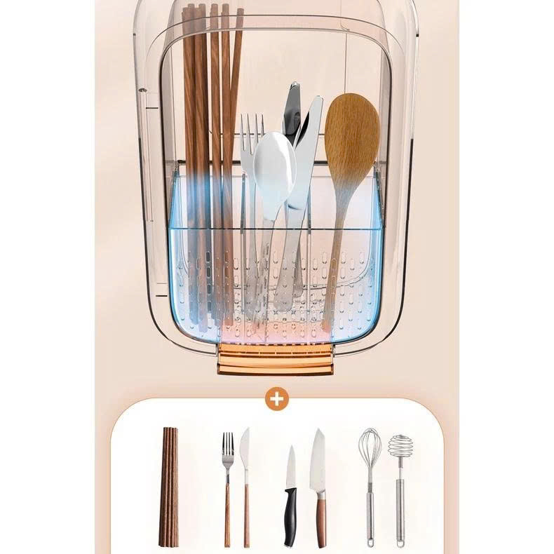 – Đũa, thìa, dao, nĩa có thể được cất thành từng ngăn, đáy có thể thoát nước nhanh chóng và tháo rời vệ sinh tiện lợi.