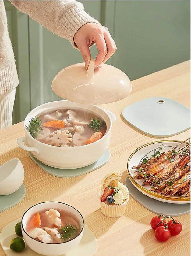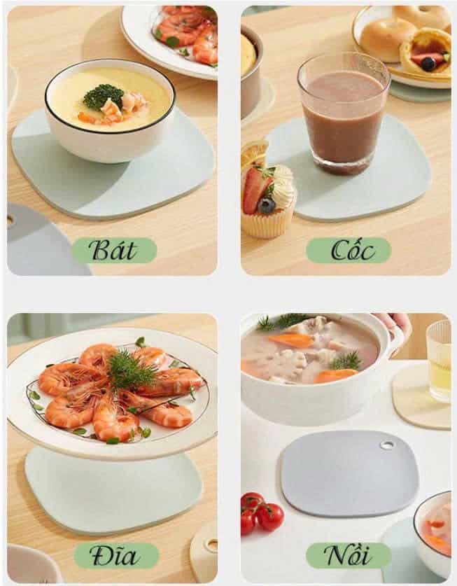 Sản phẩm được thiết kế để chịu nhiệt cao từ nồi và chảo nóng, giúp bảo vệ bề mặt bàn ăn, bếp gas, bếp điện hoặc bàn gỗ khỏi nhiệt độ cao.