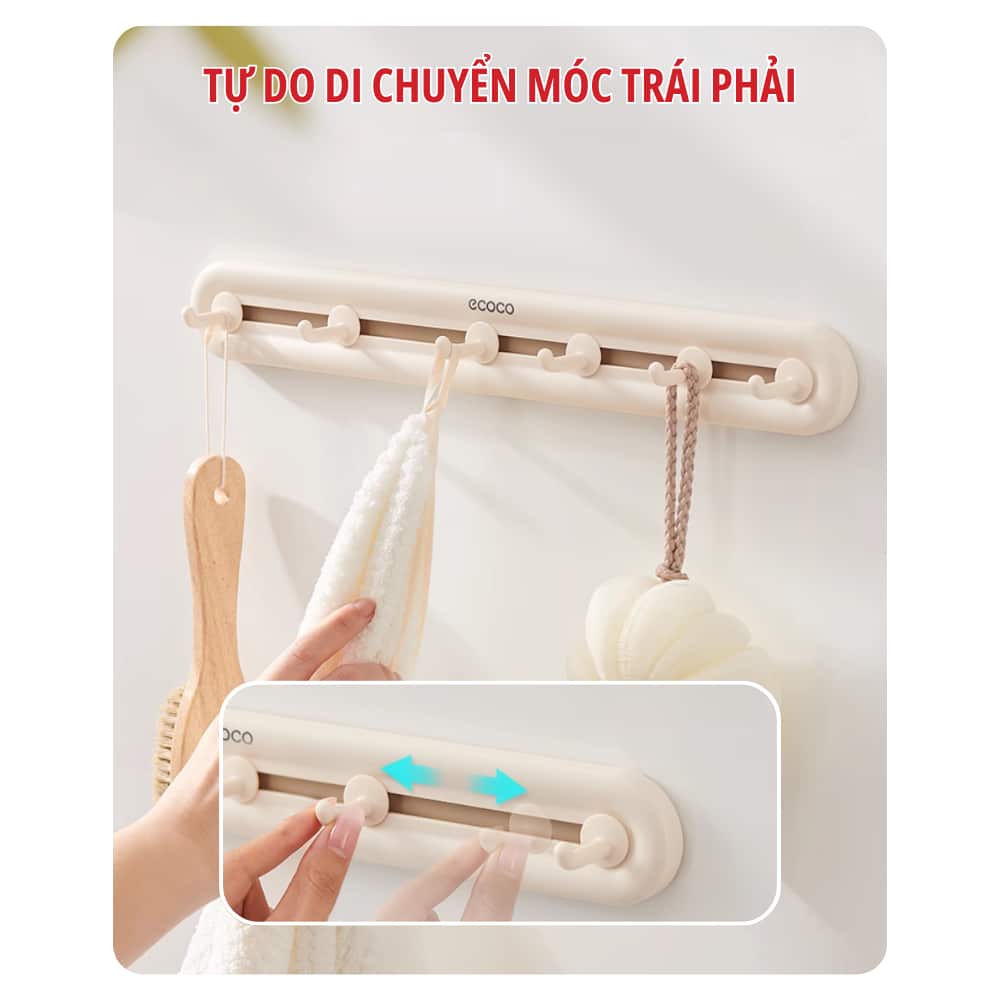 Thanh treo móc chịu lực ECOCO là phụ kiện treo đồ gắn tường thông minh, thiết kế không cần khoan vít, dùng để treo khăn, quần áo, túi xách, đồ dùng nhà bếp hoặc phòng tắm một cách gọn gàng, thẩm mỹ.