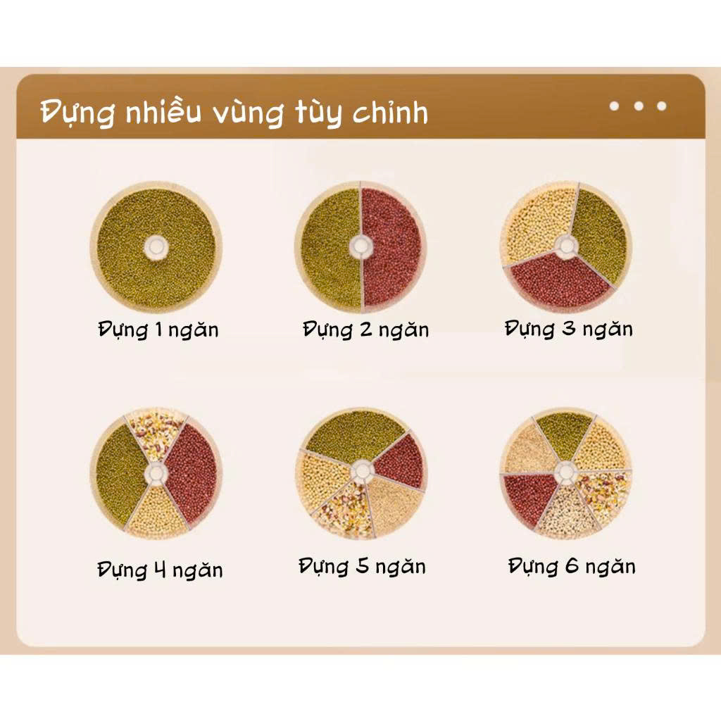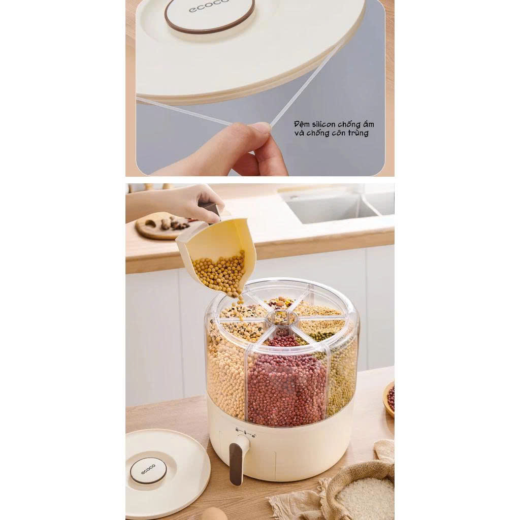 Thùng đựng hạt Ecoco được trang bị 6 ngăn có thể tháo rời và thay đổi, giúp: